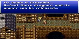 Poursuivez votre chemin vers l'ouest dans les deux salles suivantes pour arriver au Figaro castle. Suivez de nouveau Gerad. Vous constaterez que toutes les issues du château sont bloquées. Vous comprendrez bientôt pourquoi. Le chemin vous mène à une salle où il y a trois portes sur le mur du nord (vous y arrivez par la porte la plus à l'est). Ramassez le Crystal Helm, la Gravity Rod, la X-Potion et l'Ether dans les deux alcôves au sud puis prenez la porte au nord-ouest. Ramassez la Regal Crown dans le coffre qui se trouve au bout de ce passage puis revenez.
