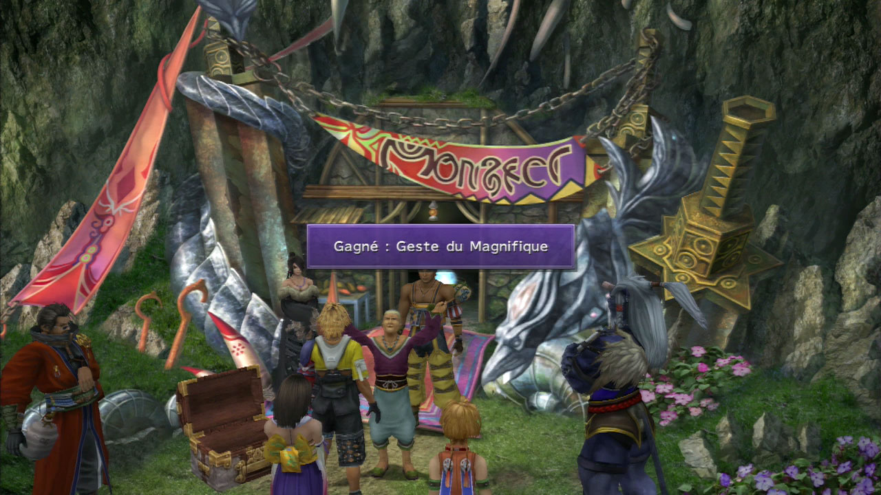 Lorsque vous avez capturé au moins un monstre de chaque espèce de la Plaine Félicité, revenez voir l'homme. Pour votre première tâche accomplie, il fait apparaître un coffre contenant la meilleure arme de Yuna, Nirvana mais il vous faudra le Miroir des 7 astres antiques pour l'ouvrir. Parlez encore à l'homme, pour avoir réuni au moins un individu de chaque espèce d'une zone, il vous offre une récompense: 60 Souffles de l'Au-delà pour la Plaine Félicité.